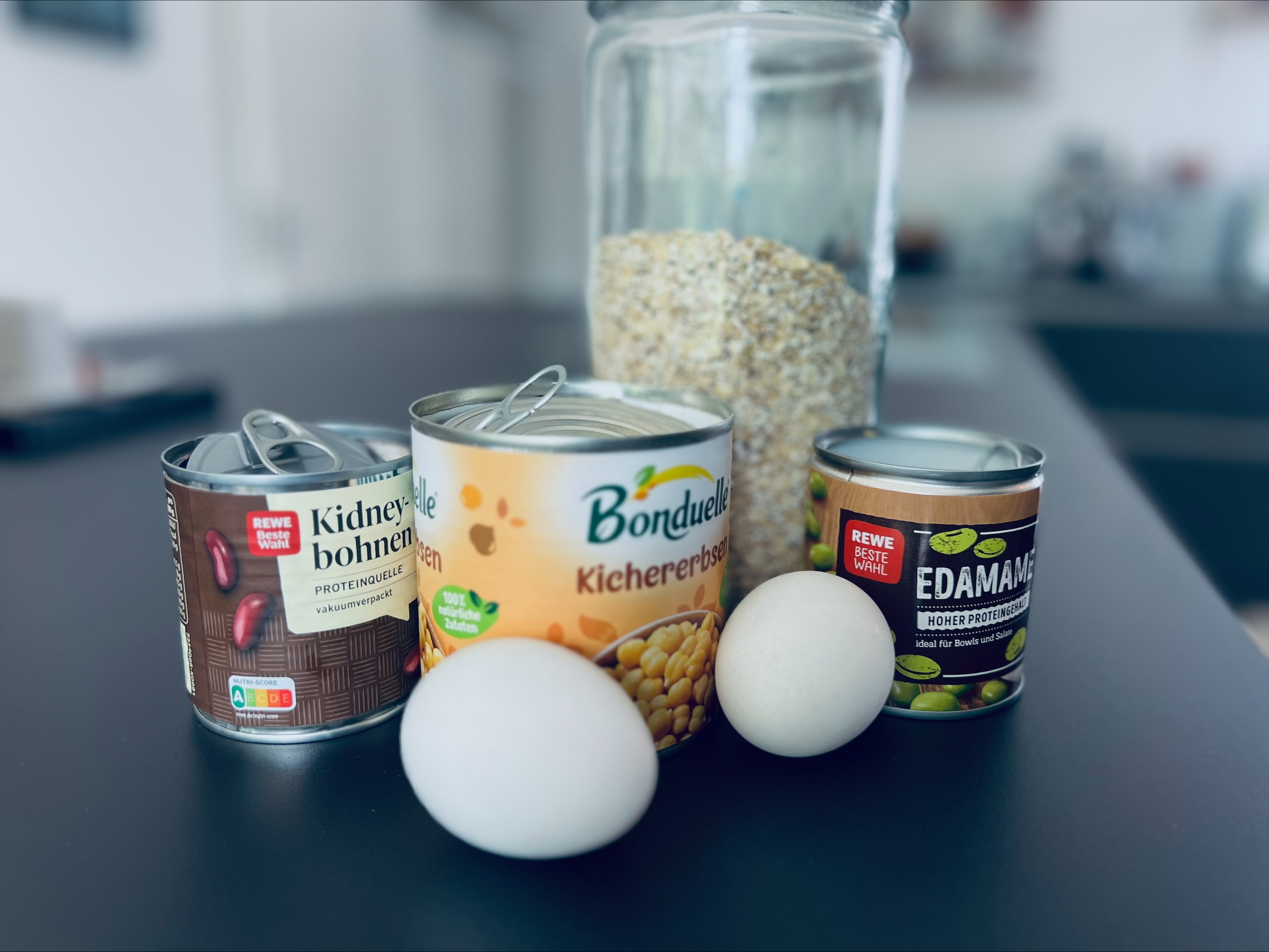 Haferflocken sind günstig, energieliefernd und vielseitig (Porridge, Overnight Oats, Smoothies). Sie füllen den Magen und verhindern Heißhunger, mit Obst oder Nüssen schmeckt es zudem richtig gut. - Eier: das Allround-Talent