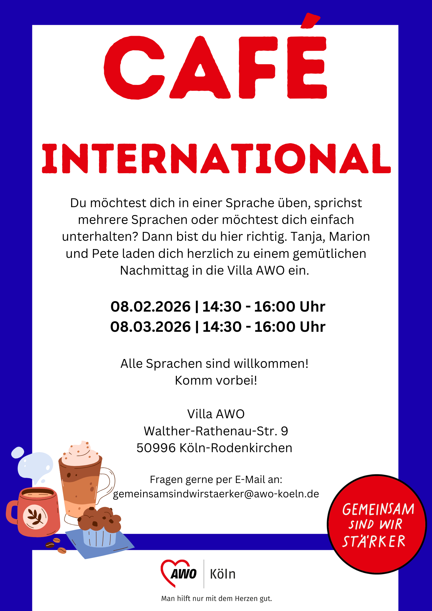 Marion, Tanja und Peter laden alle, die Lust haben neue Menschen kennenzulernen und eine nette Zeit bei einer Tasse Kaffee miteinander zu verbringen, herzlich in die Villa AWO ein.