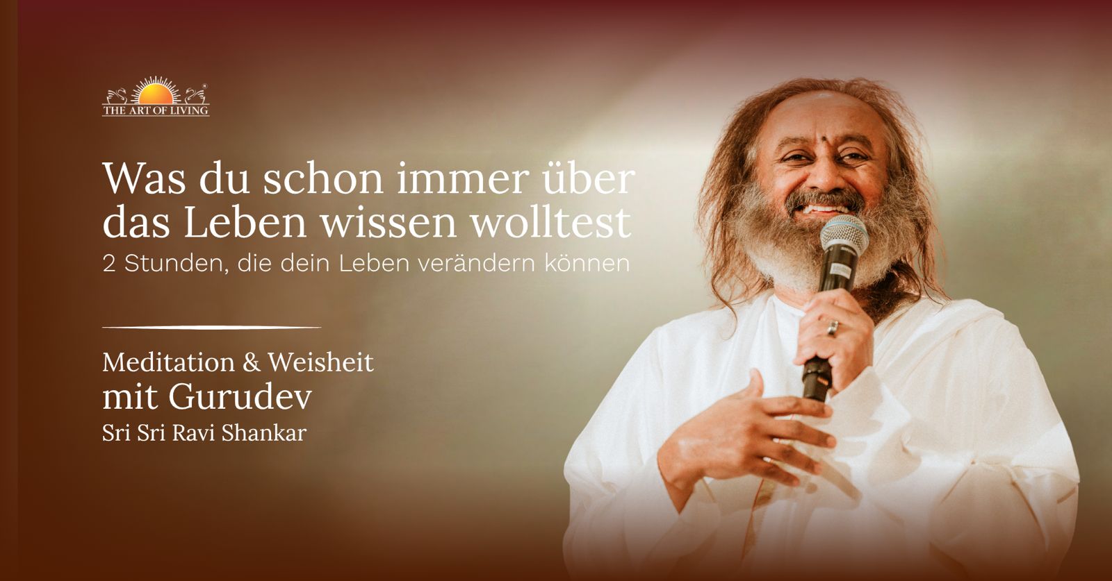 Erlebe Gurudev Sri Sri Ravi Shankar, einen der renommiertesten Friedensbotschafter und spirituellen Lehrer unserer Zeit, live!