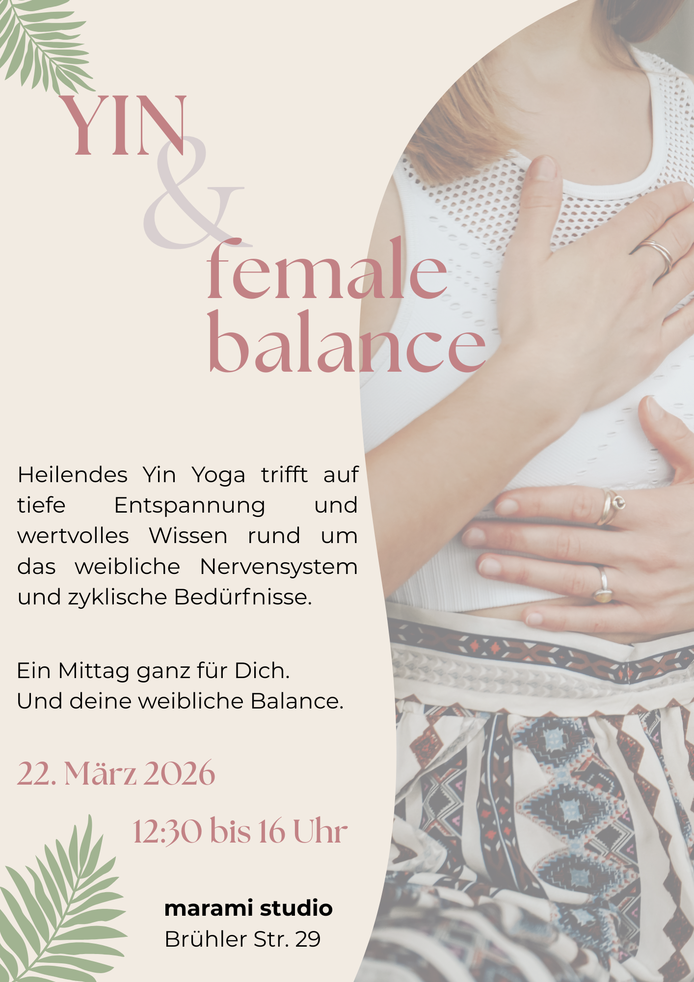 In diesem sanften und zugleich intensiven Yin Yoga Workshop kombinieren wir eine kraftvolle Yin Praxis für deine weibliche Balance mit wichtigem Wissen zum weiblichen Nervensystem, Hormongesundheit und Ansätzen der ganzheitlichen Frauenheilkunde.