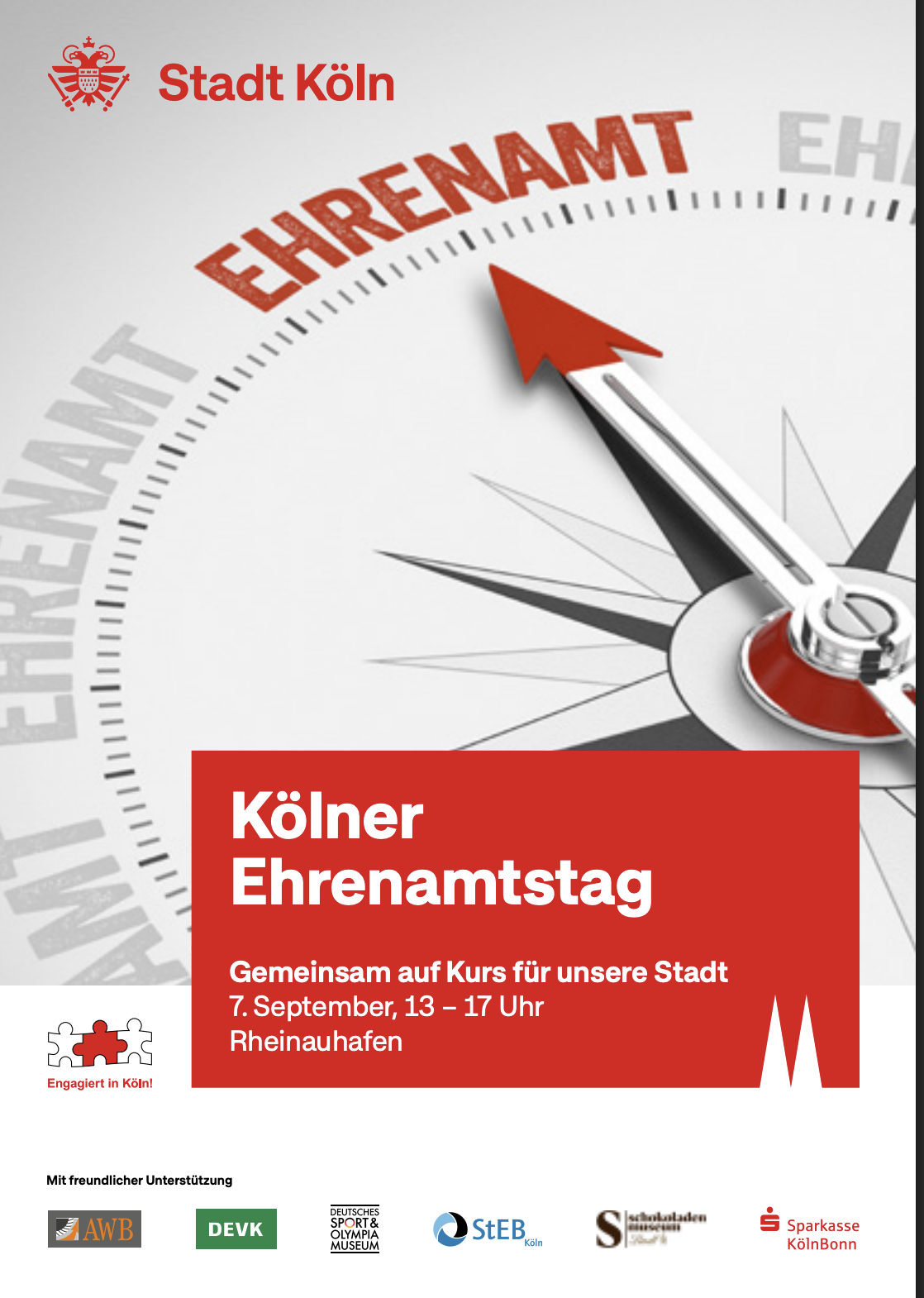 ![]() Der Kölner Ehrenamtstag findet auf Einladung von Oberbürgermeisterin Henriette Reker am Sonntag, 7. September 2025, von 13 bis 17 Uhr im Rheinauhafen statt. Der Kölner Ehrenamtstag hat das Ziel, engagierte Menschen zu vernetzen, Informationen zu teilen, freiwilliges Engagement bekannt zu machen und Ehrenamtliche zu ehren und zu gewinnen. Hier wird das Ehrenamt in seiner beeindruckenden […]