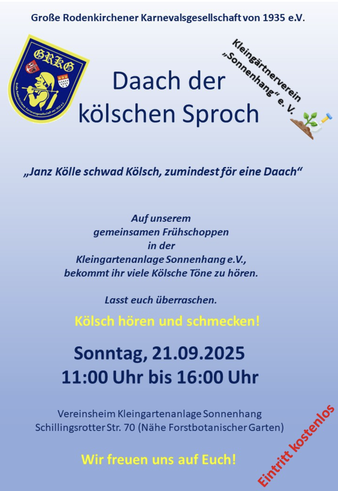 Am Samstag, 6. September, ab 14 Uhr lädt die Evangelische Kirchengemeinde Rodenkirchen herzlich zum Gemeindefest auf die Wiese und den Kindergartenparkplatz an der Erlöserkirche, Sürther Straße 34 ein. Bei Andacht, Musik und einem abwechslungsreichen Programm für alle Altersgruppen wird bis in den Abend gemeinsam gefeiert. Freuen können sich die Gäste auf Kaffee und Kuchen, Pommes […]