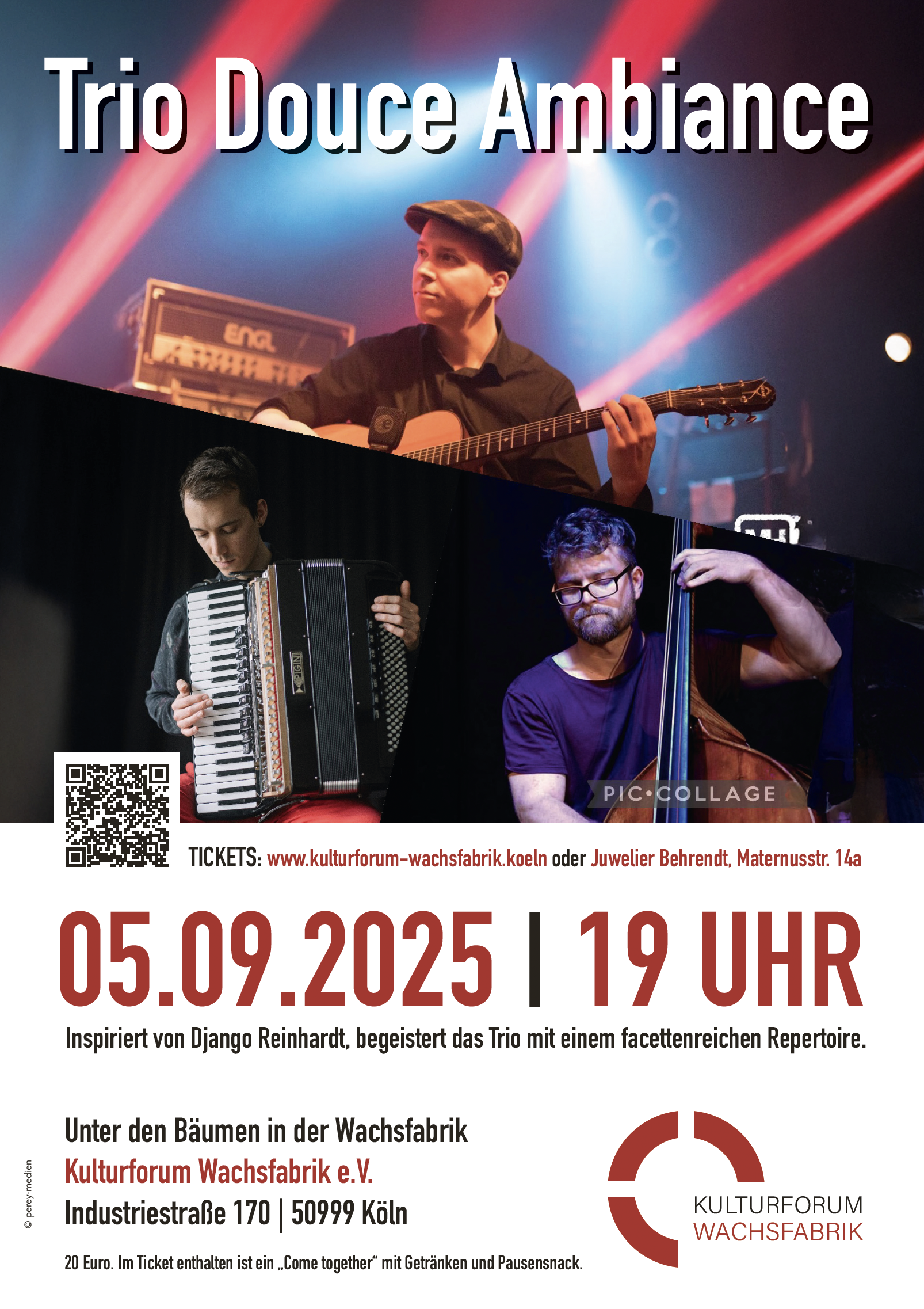![]() Trio Douce Ambiance – inspiriert von legendären Künstlern wie Django Reinhardt, Jacques Brel, Astor Piazzola und Carlos A. Jobim, vereint das Trio leidenschaftlichen Gypsy Swing, französische Chansons, Tango Nuevo und brasilianischen Bossa Nova in einem facettenreichen Repertoire. Fe Fritschi am Akkordeon, Sänger Hardo Kritz an der Gitarre und Luca Müller am Kontrabass. September 2025 - […]