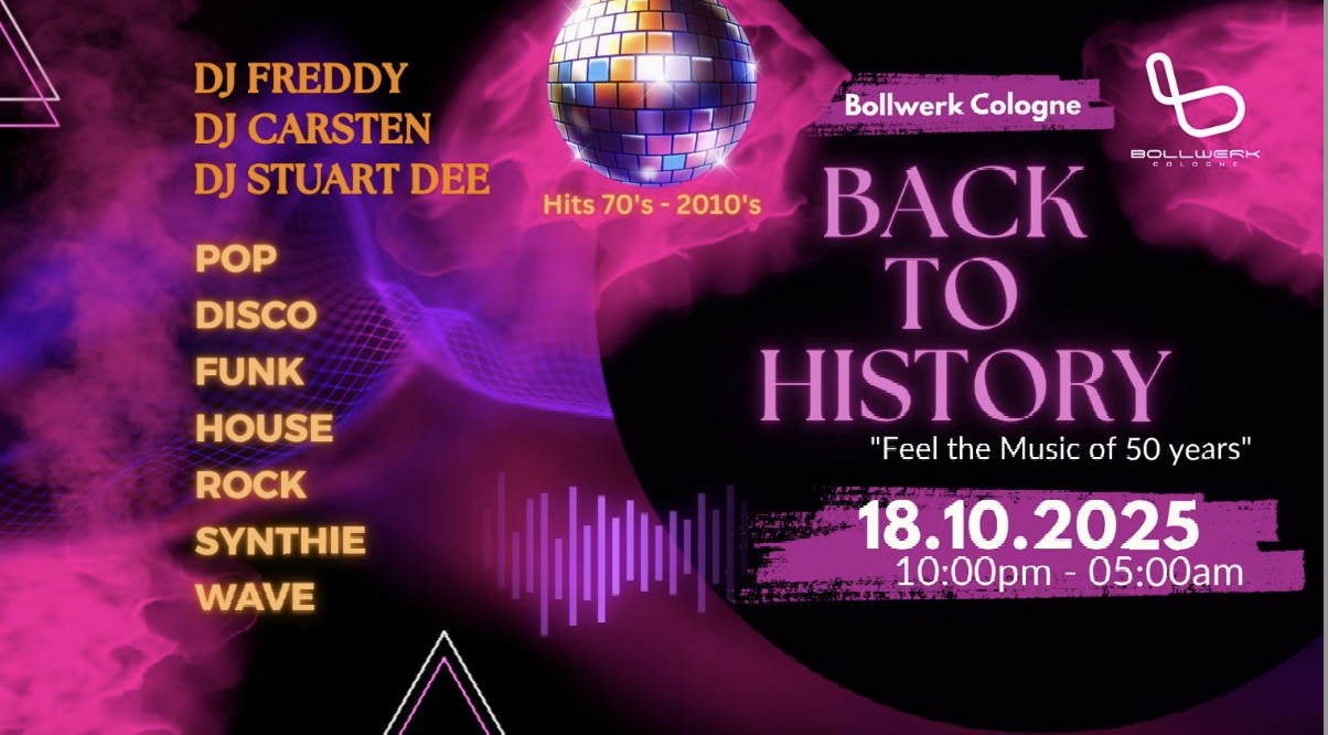 ![]() BACK TO HISTORY Bist Du bereit für die ultimative Zeitreise durch die Geschichte der Club-Musik? Back to History ist DIE neue, wilde Partyreihe in Köln. Mach dich bereit für ikonische Dancefloor Hits und unsterbliche Partyhymnen aus 50 Jahren Clubgeschichte - von den schillernden 70ern bis hin zu den legendären 2010ern. Unsere DJs servieren dir einen […]