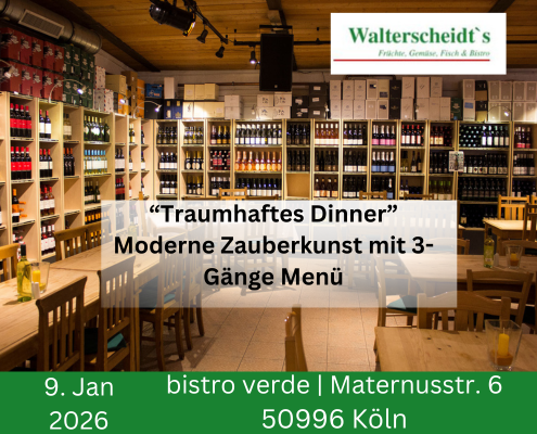 bistro verde Maternusstraße 6, Köln, NRW, Deutschland"Traumhaftes Dinner" Moderne Zauberkunst mit 3-Gänge-Menü Weitere Informationen unter: Der Traumwandler Gedankenmagie https://www.dertraumwandler.de/